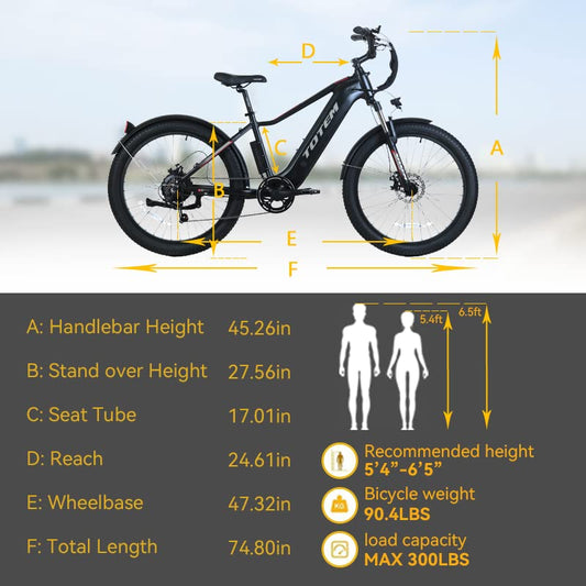 TotGuard Electric Bike, Electric Bike for Adults 26'' Ebike with 350W Motor, 19.8MPH Electric Mountain Bike with Lockable Suspension Fork, Removable 36V/10.4Ah Battery, Professional 21 Speed Gears