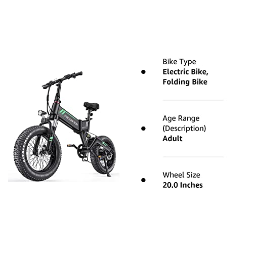 Wooken Electric Bike, 20'' Fat Tire Electric Bike for Adults, 500W Folding Electric Bike with 48V 10Ah Battery, Shimano 7 Speed Gears, Dual Shock Absorber, 20MPH Ebike for Commute Mountain Beach Snow