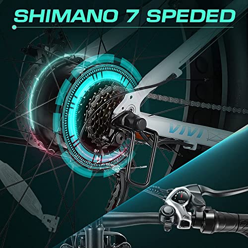 Vivi F26F Electric Bike 26" x 4.0 Fat Tire 500W Electric Bike for Adults, Electric Mountain Bike with 48V 13Ah Removable Battery Shimano 7 Speed 25MPH Up to 50 Miles for Commuting, Beach, Snow