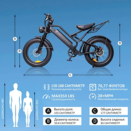 SMARTRAVEL Electric Bike 20" Fat Tire Electric Bike for Adults 1200W Electric Bicycles with 48V 17.5Ah Battery Shimano 7 Speed Gears 28MPH Ebike for Commute Mountain Beach Snow DK400