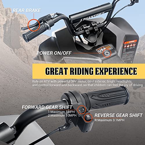 Phantomgogo Hyper Quad Electric Ride-On ATV 4 Wheeler for Kids 36v 350W Brushed Motor Outdoor Off-Road Go Cart Dirt Bike (White)